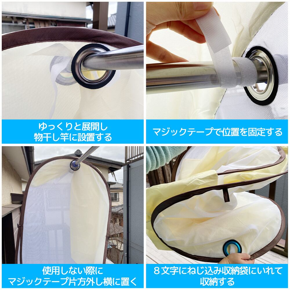 ■【竿に通すだけで簡単に取り付け可能】直径4cm以下の物干し竿に適しています。